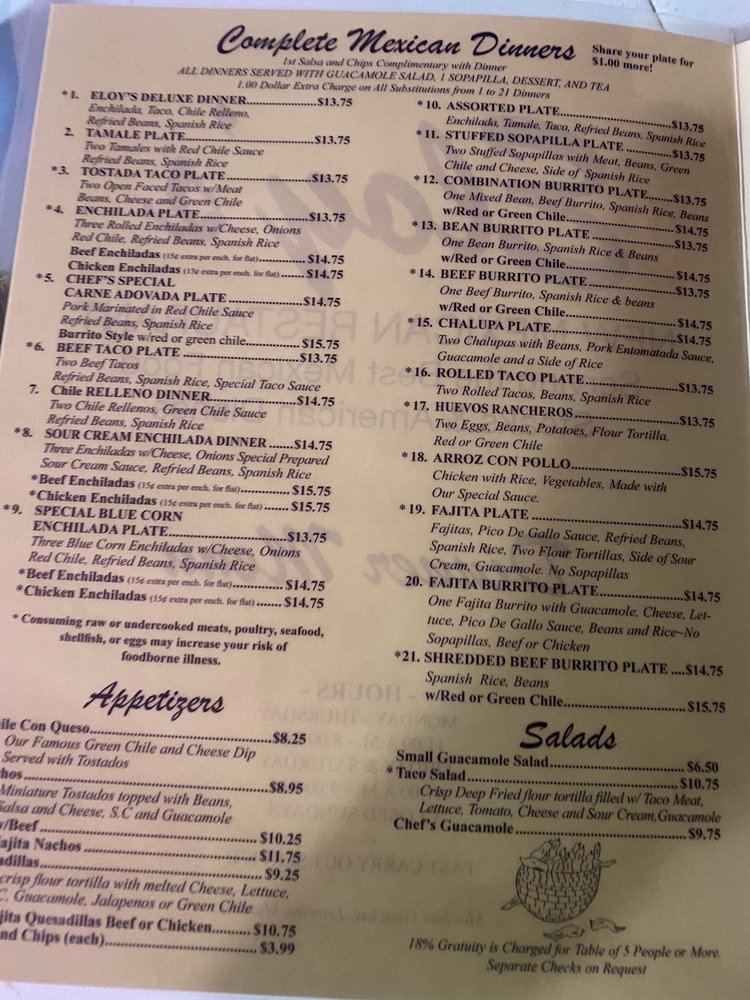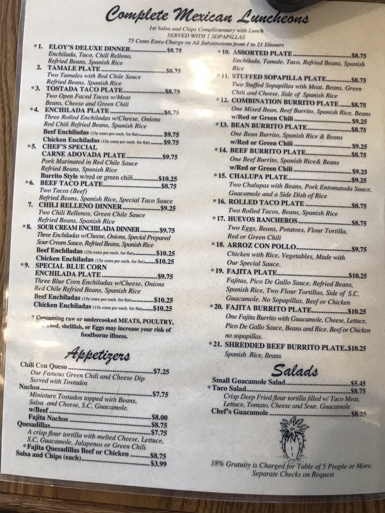 Eloy's Mexican Restaurant Menu (Update 2025)